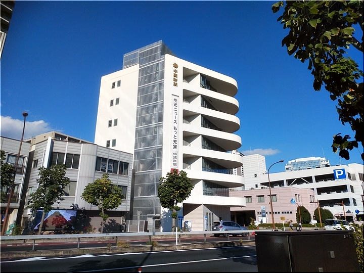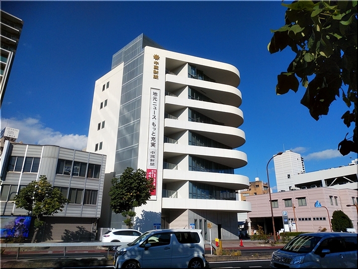 帰路では、対面の国道2号線脇から中国新聞備後本社ビルをパチリです。気持ちのイィ秋晴れでしたけど、気温は随分高くて暑さを感じてしまいましたネ。