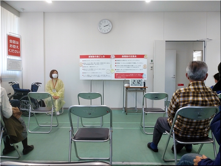 接種後は、15分間の待機時間がありますから、14:23までは別室で待機。待機室には、それなりに接種済みの方々がおられましたけど、皆さん、一様に、予約時間よりは早く完了されましたようですネ。