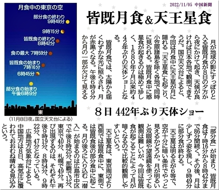 --- 2022/11/08(最終更新:2022/11/8) 中国新聞デジタル ---