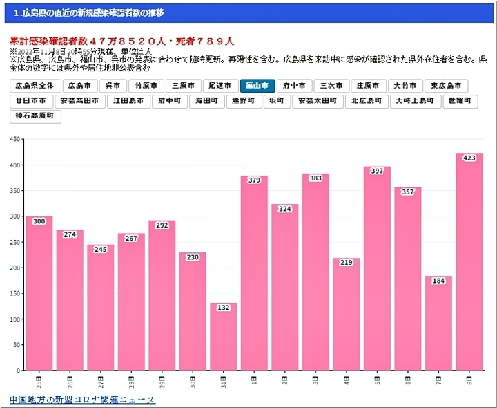 昨日の福山市の発表では、新たなコロナ感染者の発生は、423人でしたようであります。