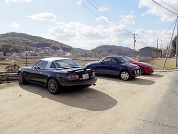 コペン号の両側のスポーツタイプの車2台は、最初から止まっておりますから、う〜ん、やっぱり、この駐車場は地元の方の月極駐車場なのかも(^-^)