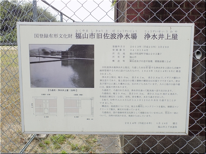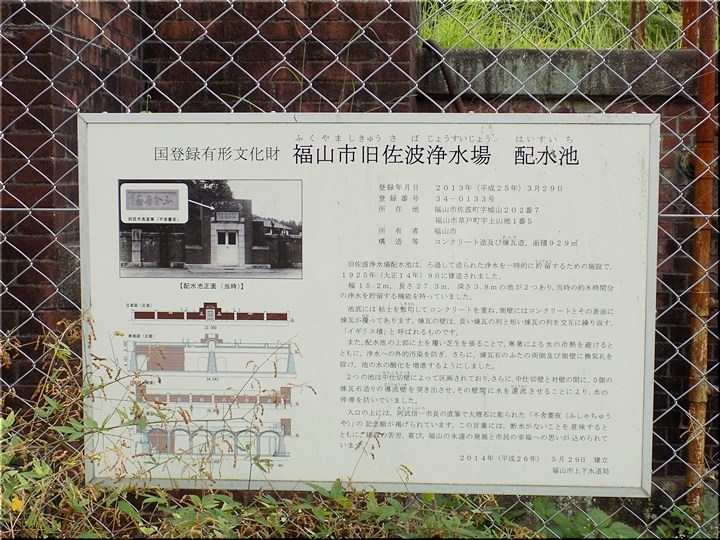 1922年(大正11年)6月着工、1925年(大正14年)9月に福山市最初の浄水場としてここ佐波浄水場が竣工した。