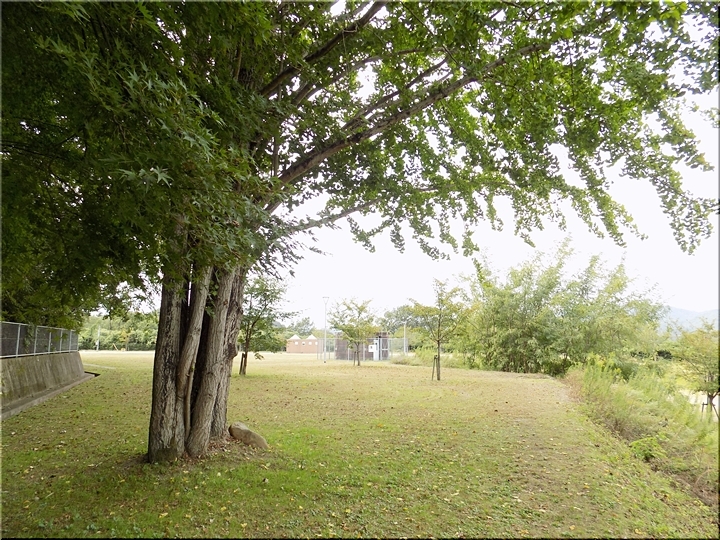 一応、佐波城跡に上がります道でも有るのかも…と、確認してみたのですけど、公園と山際との境界にはフェンスが設けられ、山側への進入路は無さそうでしたネ。