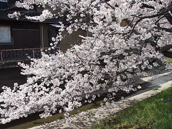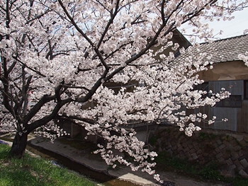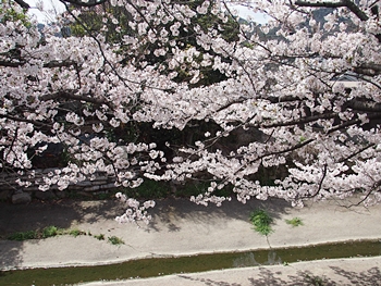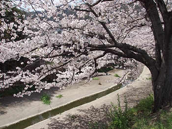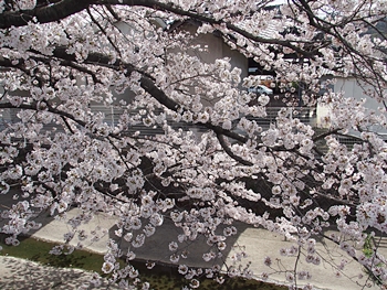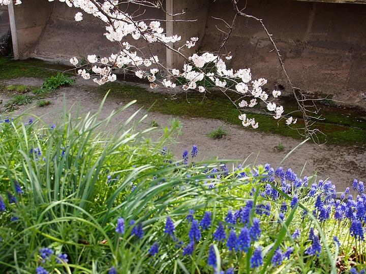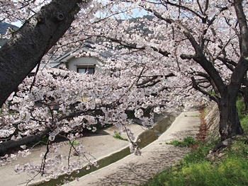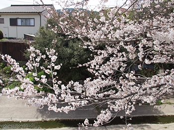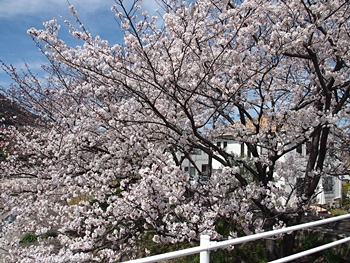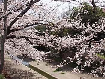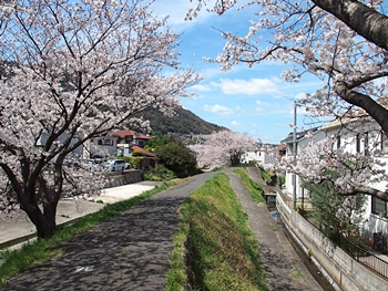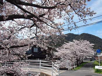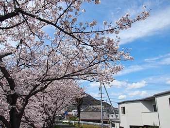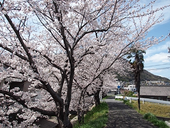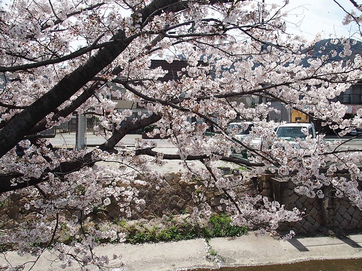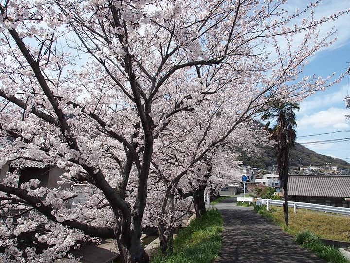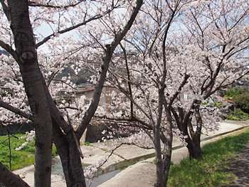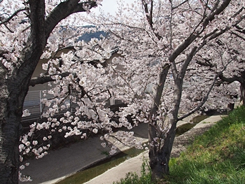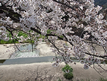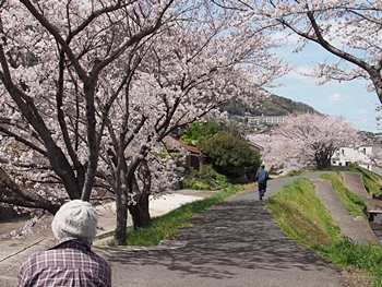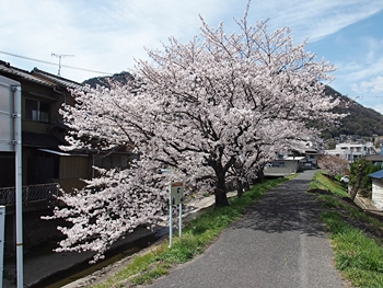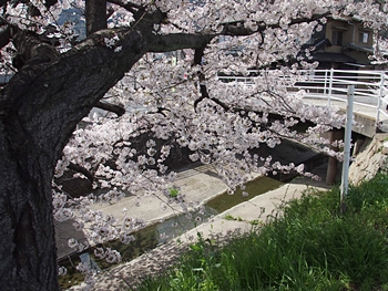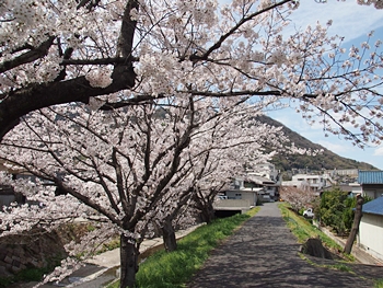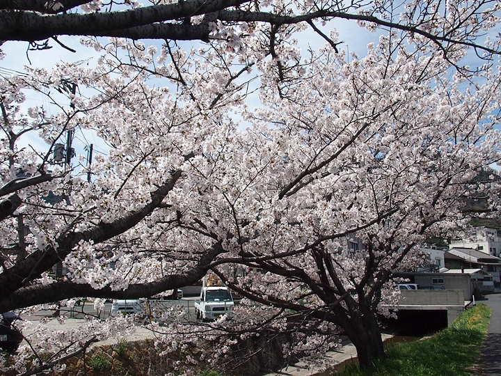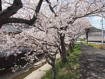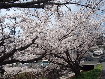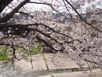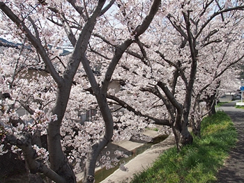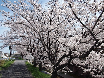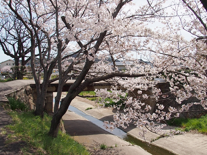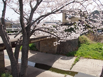 鉄橋跡脇のサクラは、まだまだ八分咲き。満開には、もぅ2〜3日要しそうであります。