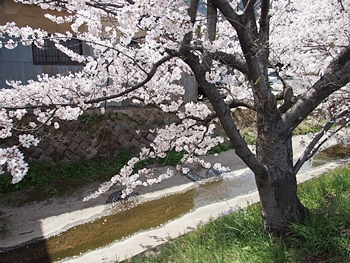 水呑川土手・サクラ並木の、似たような景観を何枚も撮って来ましたけど、豊年橋北側まで戻って来ますと、今年のサクラ見物もこれでオシマイです。