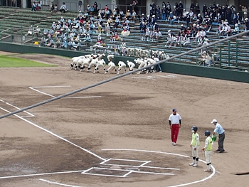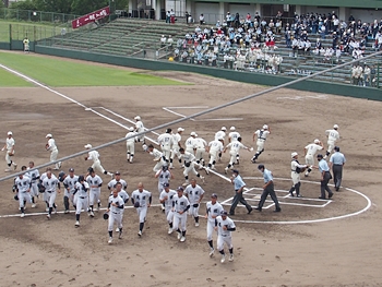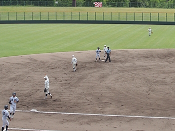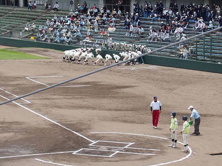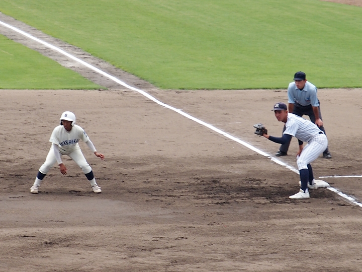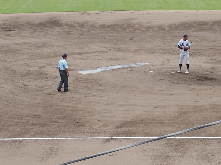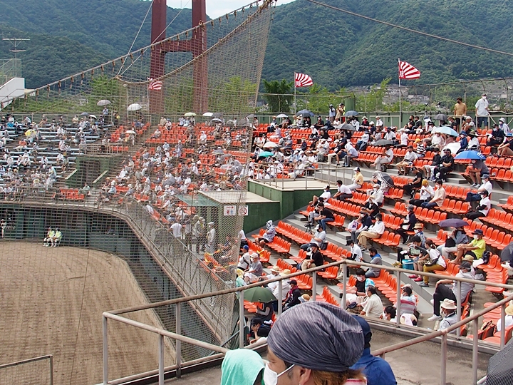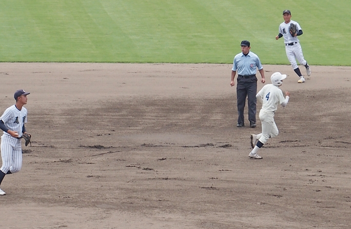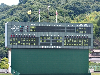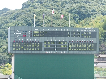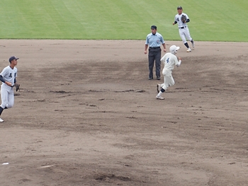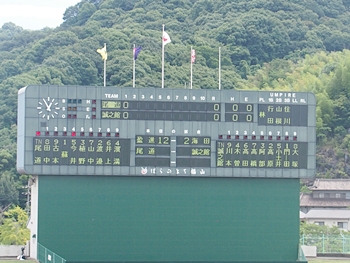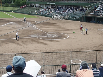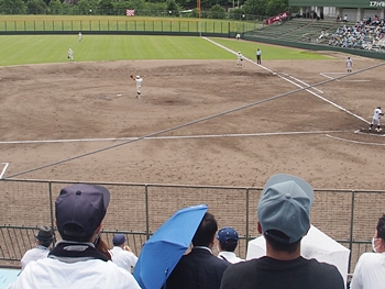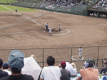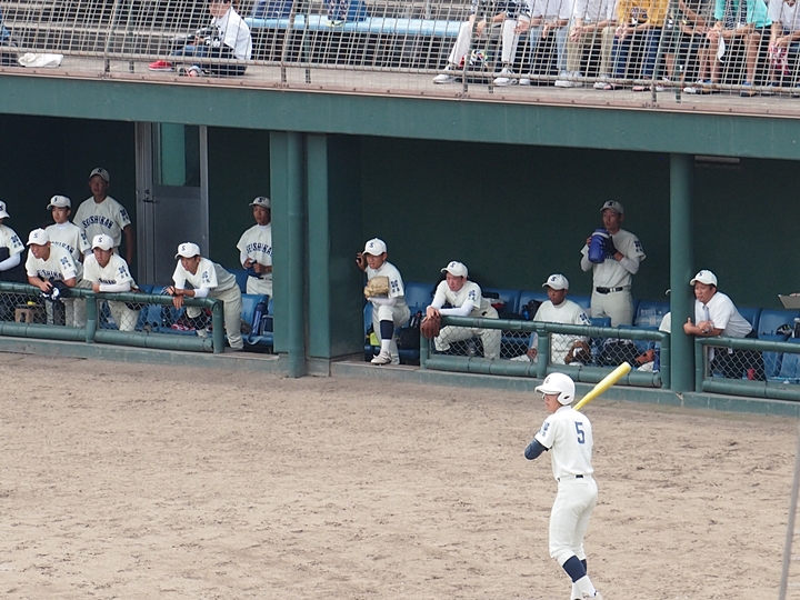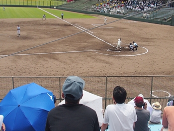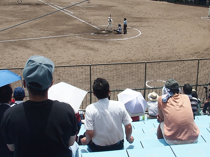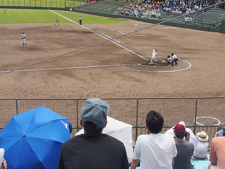 暑さの中でウトウトしておりまして、歓声でハッと我に返りますと、う〜ん、尾道高に先取点が…