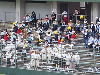 この間に尾道高が1点の先取点で、俄然、賑やかとなりました尾道高応援団。でも、未だ、序盤ですから、どんな展開になりますか(^-^)//"