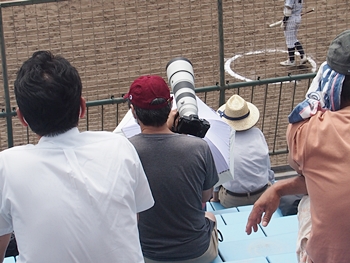 GONsanの席から前方に、高そうなカメラを構える男性が…誠之館の選手の皆様を狙っておられますように感じますが、どちらの関係者なんでしょうねぇ〜