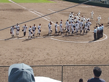 この日の第一試合の勝者が盈進高で、第二試合の勝者が尾道高でありました。