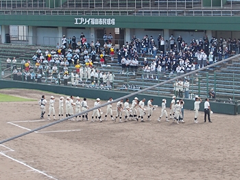 最終回の攻撃も、再逆転は叶いませんでゲームセット。尾道高が逃げ切る結果となりましたネ(^-^)//"