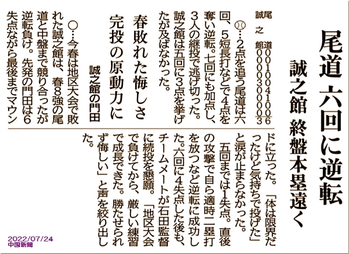 7回表の尾道高は、1点止まりで「尾道6×3誠之館」。