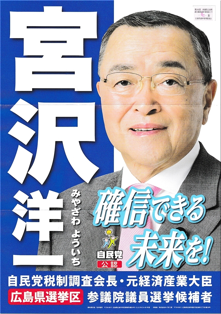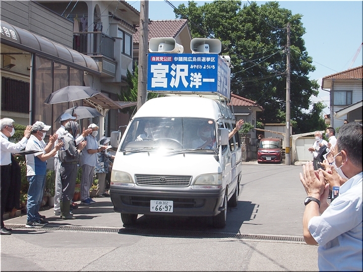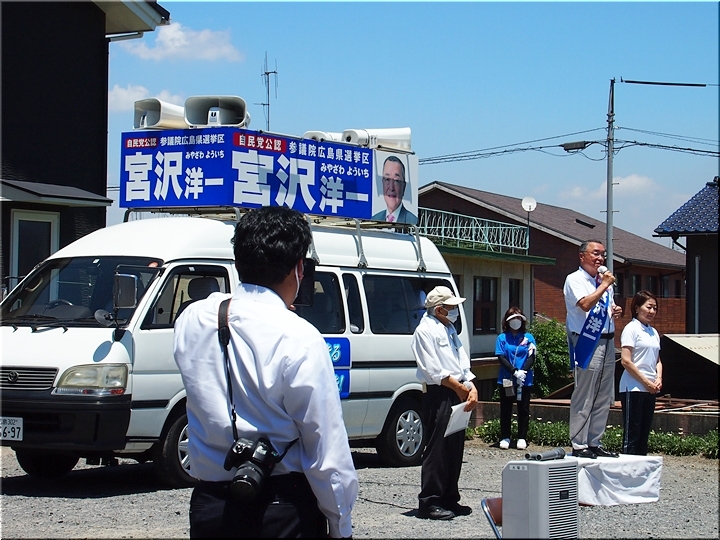 6/22(水)の第26回参院選公示と同時に、7/10(日)投票日まで18日間の選挙戦に突入で、早や1週間が経ちました昨日・6/30(木)には、我が町内に宮沢洋一候補が来訪です(^.-)☆