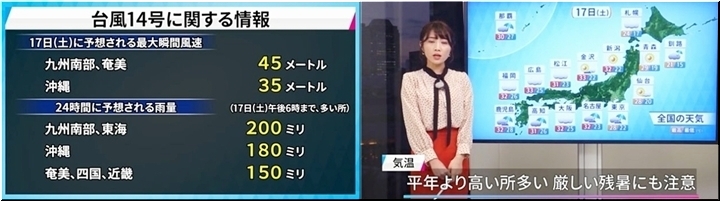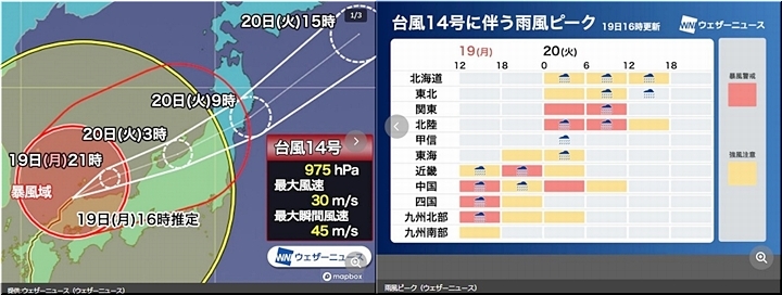 --- 9/14(水) 18:22配信 ウェザーニュース ---
