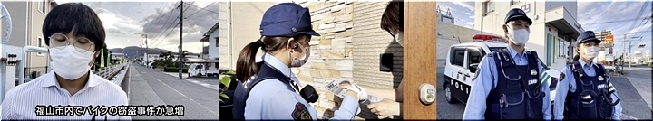 被害が集中する地域を管轄する曙交番の香野真佑巡査(22)と隅田雅也巡査(26)は、住宅を1軒ずつ回ってチラシを配り、バイクの駐輪位置などを確認しながら注意を促している。被害者が悲しむ姿を多く見てきたという香野巡査は「バイクを物色する不審人物を目撃したときはすぐ知らせてほしい」と話している。
