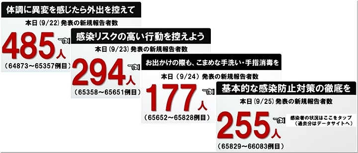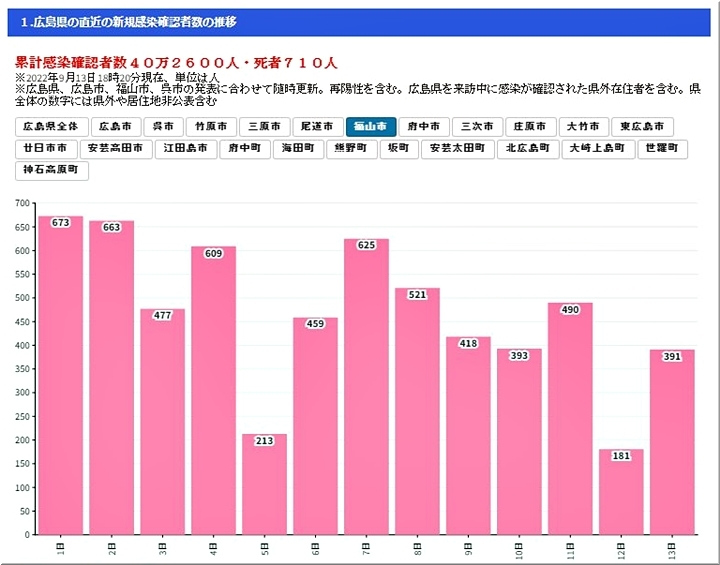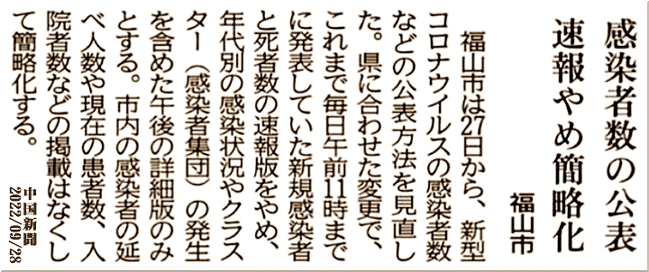 福山市は、9/27(火)から感染者数公表の速報を止め、簡略化されましたようですネ。
