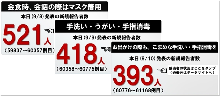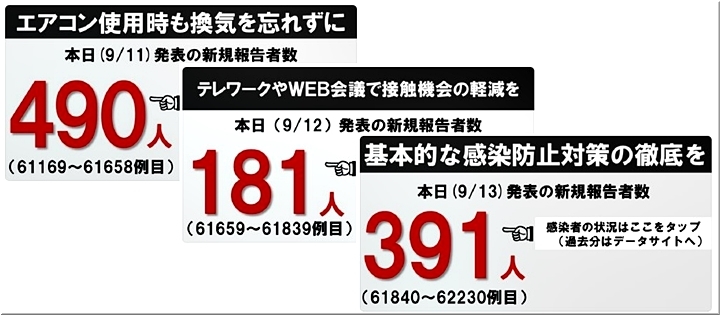 先日の3連休で、また感染者が急増かと危惧しましたけど、そぅでもありませんでヤレヤレの感も…