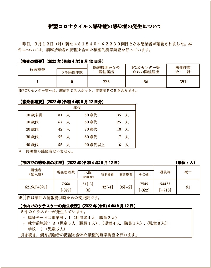 9/27(火)から感染者数公表の速報を止め、簡略化の福山市です…