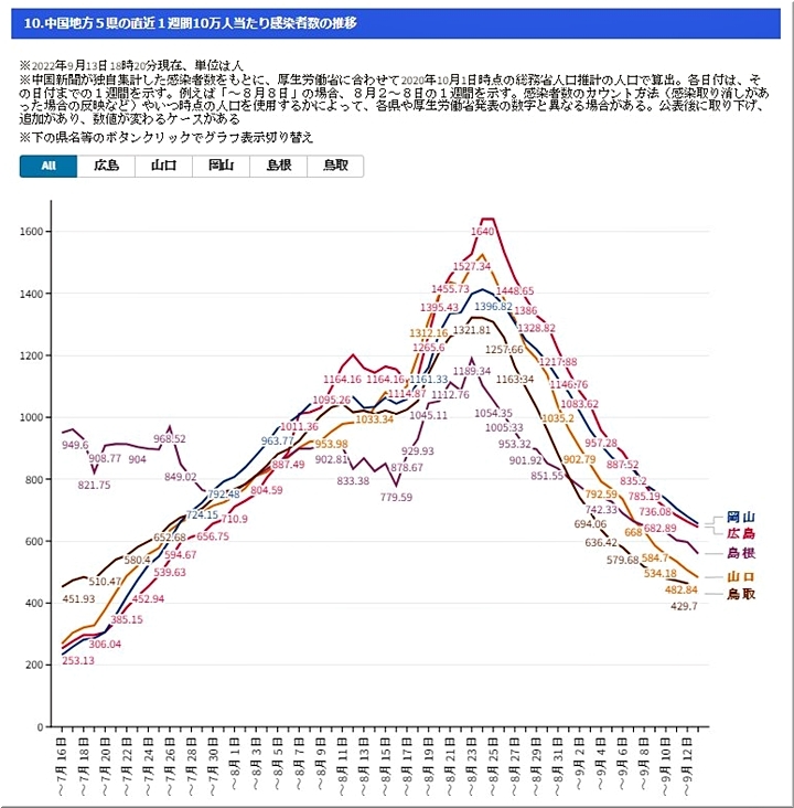 ここ最近の日々の感染者は、中国地方5県とも減少傾向にありまして、福山市も同様です。