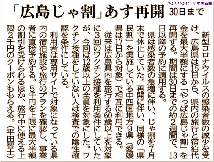 --- 9/25(日) 16:37配信 中国新聞デジタル ---