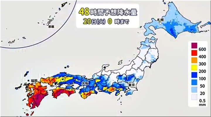 ・中四国は大雨に警戒 九州の雨は減少傾向