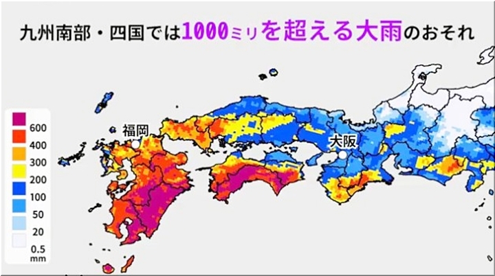 昨夜から激しい雨が断続的に続いた宮崎県では記録的な大雨となりました。えびの市では、今日9時20分までの24時間雨量が726.0mmに達しています。