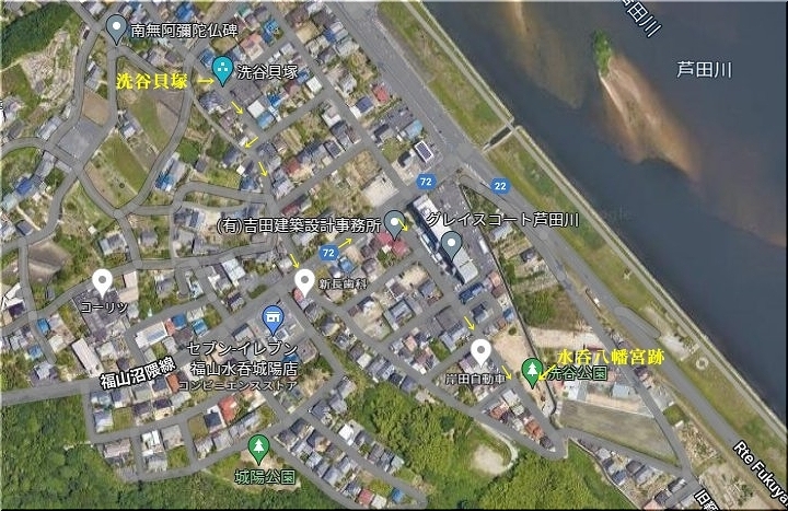 洗谷貝塚を後にしますと、次は「水呑八幡宮跡」に向かいます。