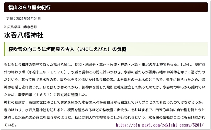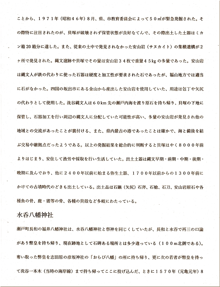 瀬戸町長和の福井八幡神社は、水呑八幡神社と祭神を同じくしていたが、長和と水呑で再三の口論があり幣皇を持ち帰り、現在跡地として石碑ある場所とは多少違っている(100m北側である)。