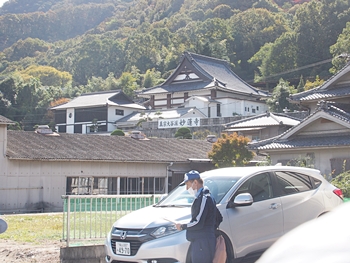 市道から、説明を受けながら浄蓮寺を眺望となりまして、創樹会sanのバスが既に到着しています駐車場へと向かう事となりました。