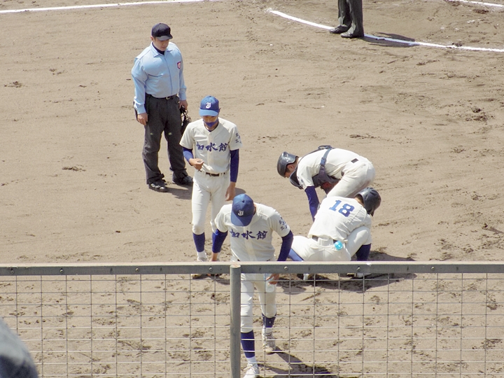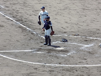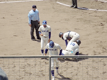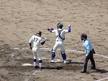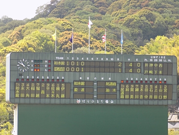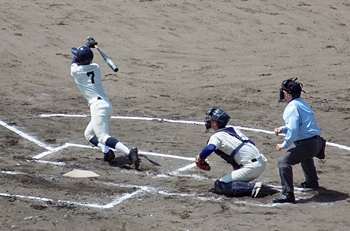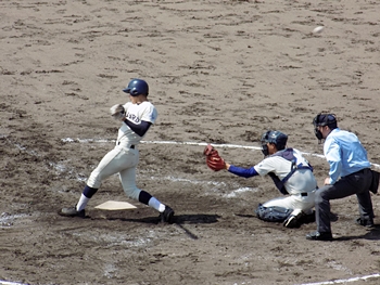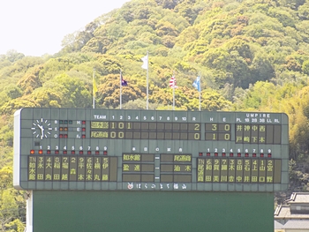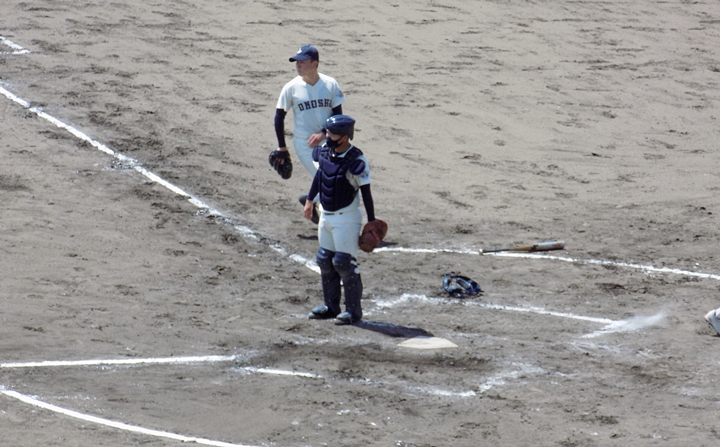 が、8回表、う〜ん、追加点を許してしまいましたネ。打線が今一、奮いません尾道商。終盤のこの1点は、大きいかも分かりませんねぇ〜