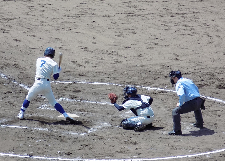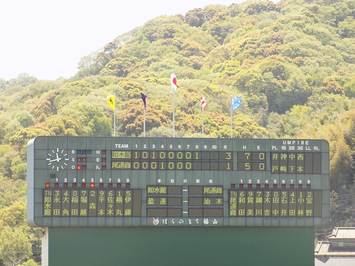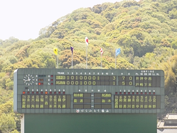 5・6・7回と両チームとも得点ならず。尾道商の投手の健闘が光ります。
