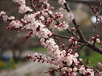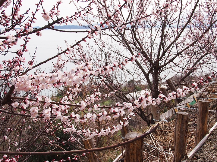 この周辺の杏も、満開には程遠く三分咲きの状態です。