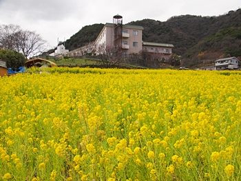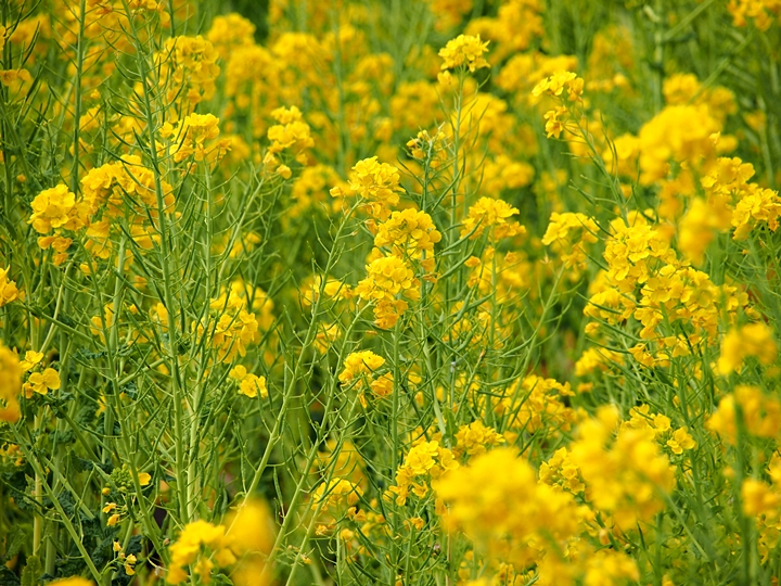 菜の花の本数が多くて一斉に咲き誇りました状態は、やはり大変キレイですネ。天気が良ければ、一層、黄色が映えて、キレイなんでしょうけどネ(^-^)//"