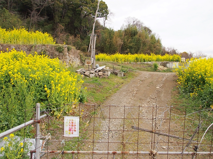 菜の花畑からは、また十三仏方向に坂道を戻り、往路の下側の道を円明寺方向に散策です(^-^)//"