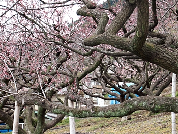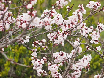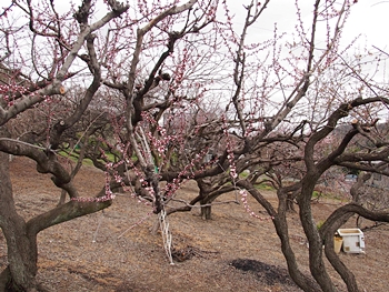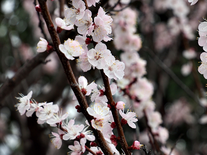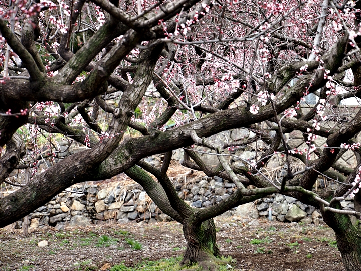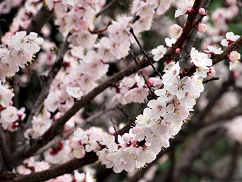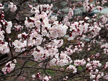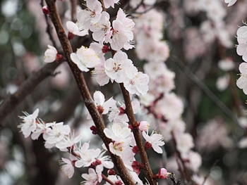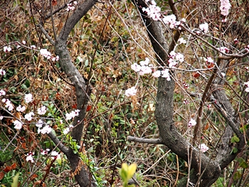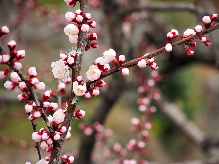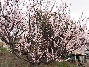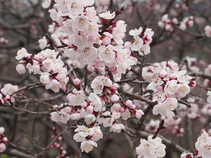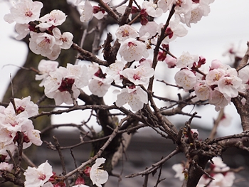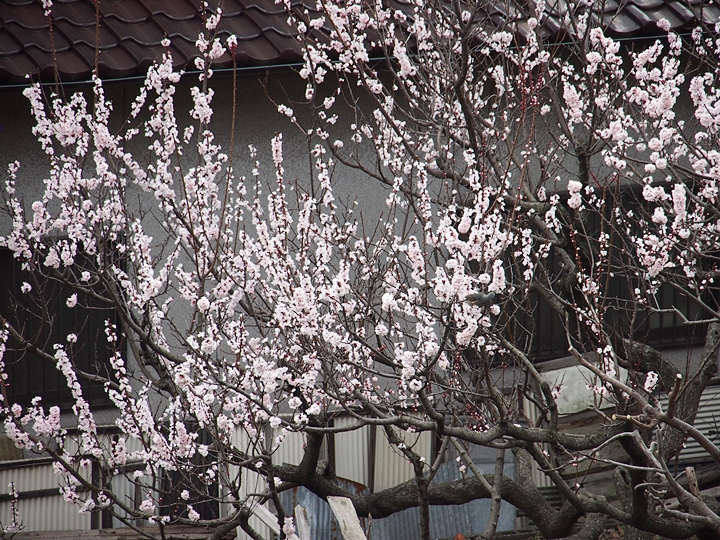 何度か試み、ヤッと撮れましたのがこの2枚。いずれもピンボケですけどネ(^-^; 杏が満開で来訪者で賑わっておりましたら、いくらでも食べ物にありつけますのでしょうけど…