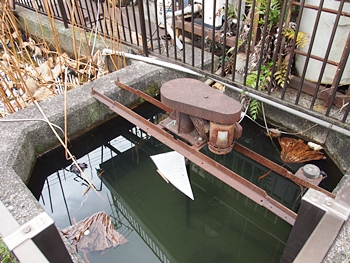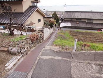 杏の花に眼を向けながら、畑と敷地の間の狭い道を海岸沿い方向に下っておりますと、こんな所に水道栓が…