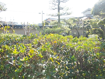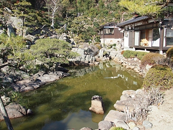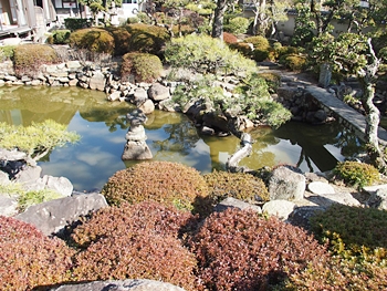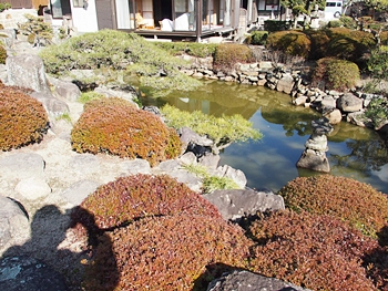 清水氏庭園は、先日、12/17(土)の新聞紙上に記事掲載がありましたけど、一般公開しておられますか?…には、「さぁ、一般公開はどぅかな…でも、清水sanは金浦公民館の館長さんで、たった今、食事に帰られましたから、今から伺うとおられますよ。訪問して頼んでみられたら…私たちも、今、清水庭園の記事掲載を話していたとこなんですよ…」との事で、とにかく、伺ってみます事に(^-^)