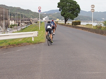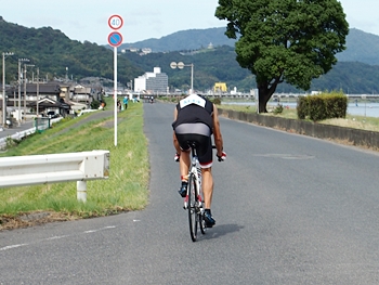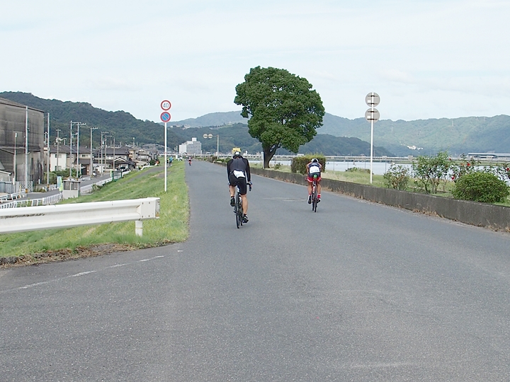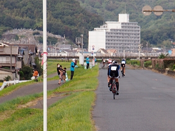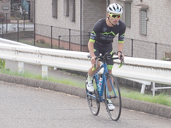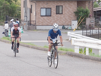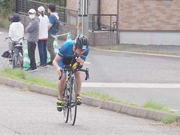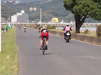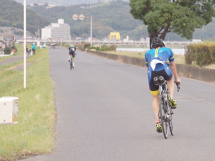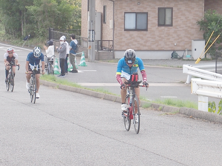 近付きましたのでトップ選手をカメラで捉えますと、う〜ん、トップが変わっておりました。多分、5周目のトップは黒いユニフォームの選手でしたような…