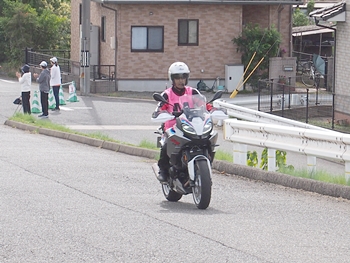 そぅしていますと、またバイクがヤッて来ました。多分、6周目のトップ選手の先導なのでしょうねぇ〜