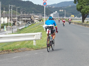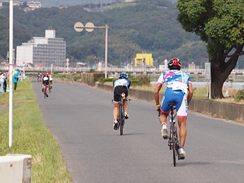 こぅして通過して行かれます選手の皆さんにカメラを向けながら、時たま後方を振り返り対岸(西新涯側)に眼を向けますけど、観戦者・応援者の姿が見当たりませんのが寂しいですネ。