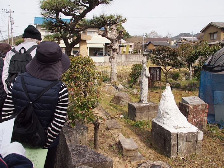 公民館をスタートしまして、まず向かいますのが「足利義昭居館(鞆幕府)趾・御殿畑」「惣堂明神社」のようです。