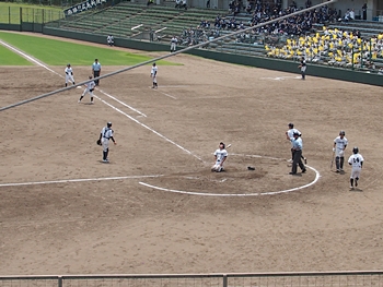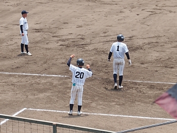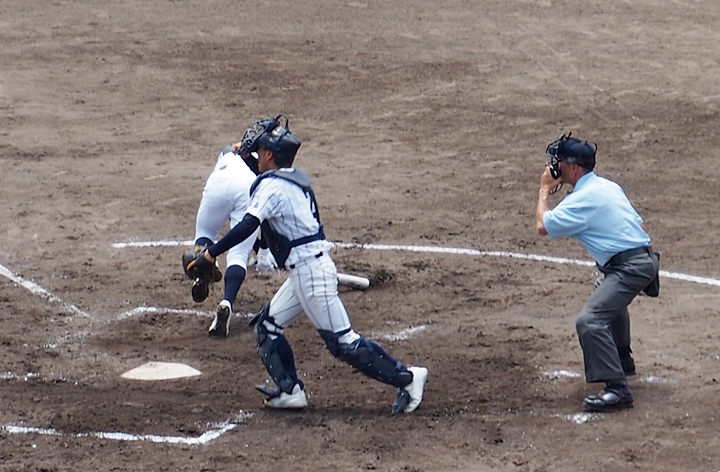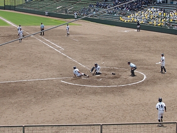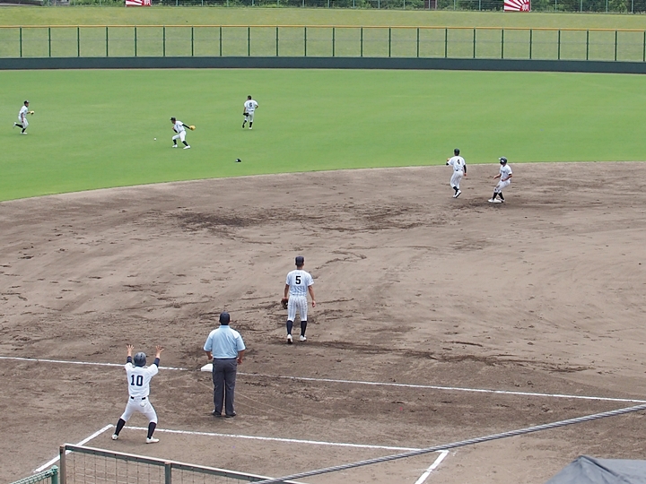 が、4回表の油木高は残念でしたネ。果敢に本塁を狙いまして「1×1」の同点かと思いましたけど、新庄高の本塁への送球が勝っておりました(^_^)v