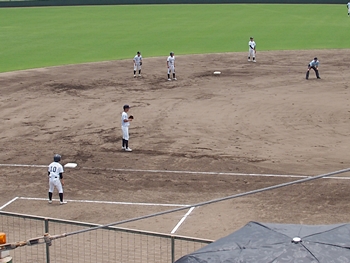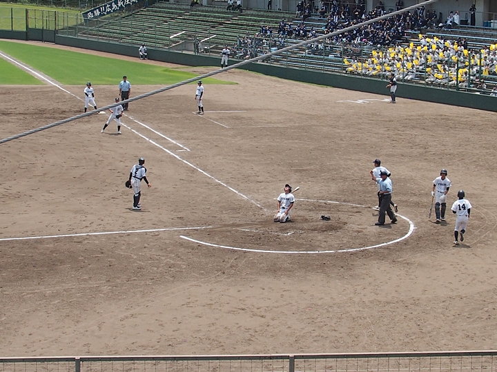 続いて2回の油木高校、ランナー1累、2塁と、チャンスは作るのですけど、得点には至らず2回表も無得点。