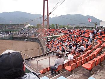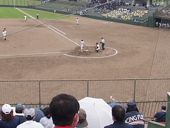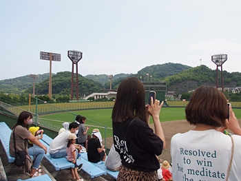 GONsanの前に陣取られます女性お二人、新庄高の勝利を見届けますと、「勝って当たり前」と言うような感じで、意気揚々と去って行かれましたネ(^.-)☆
