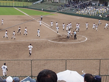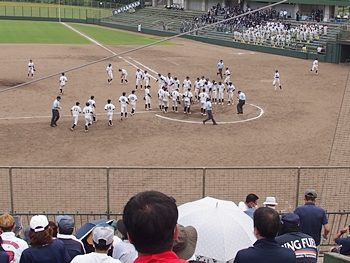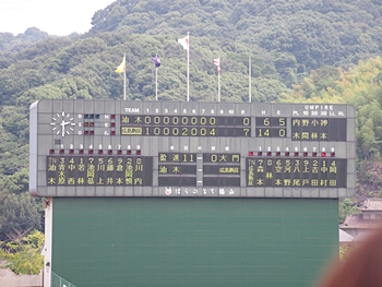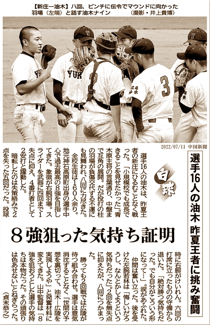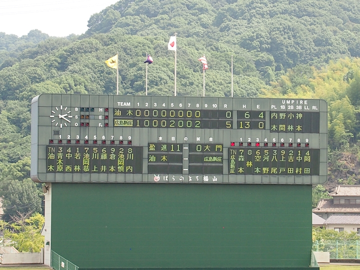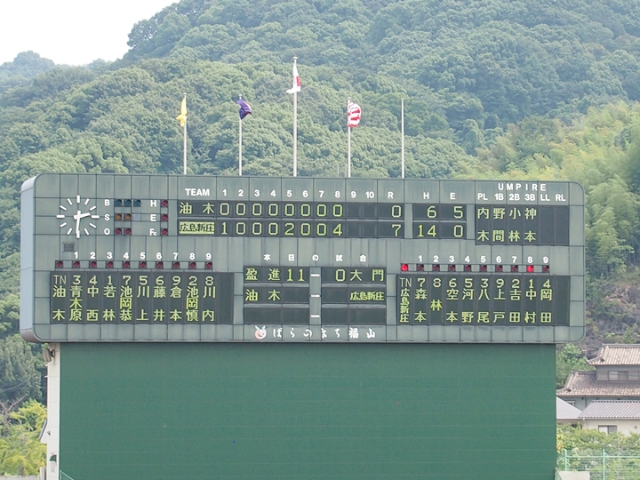 油木高も健闘していましたのですけど、う〜ん、8回裏に両チームの力の差が出ましたようです。結局、この回は4得点で、「油木0×7新庄」と8回コールドゲーム成立となりました。