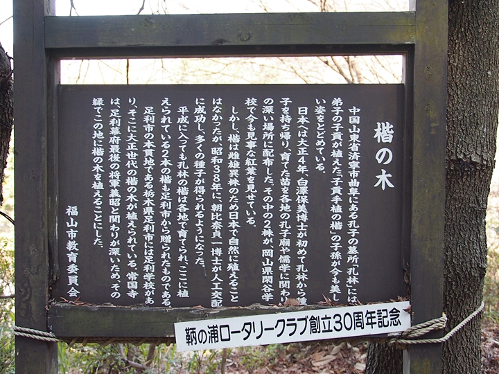 平成に入っても孔林の楷は各地で育てられ、ここに植えられている2本の楷も足利市から贈られたものである。