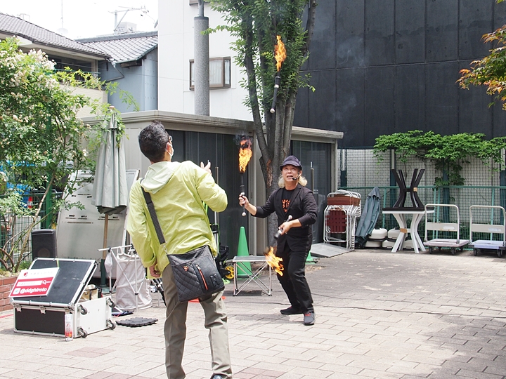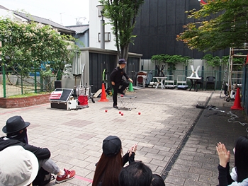 多分、今回も又、そぅなりますのでしょうけど、とりあえず天満屋正面入口前の大道芸から拝見です(^.-)☆