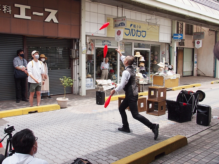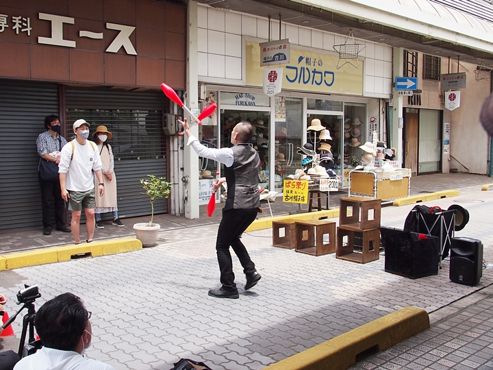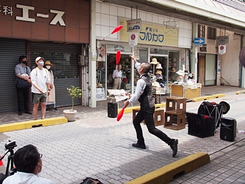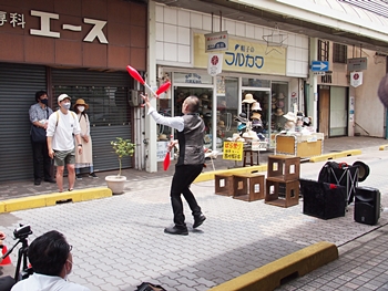 ローズナード霞(霞本通)までヤッて来ますと、ここでは渡辺あきら《anのジャグリングで人の輪が(^.-)☆