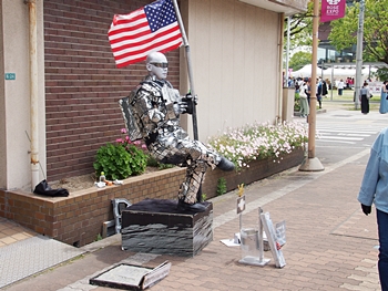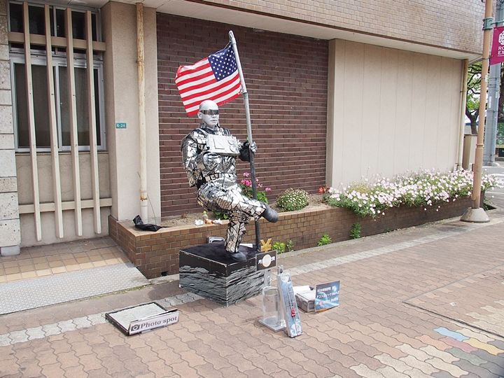 続いて中央公園にと向かっていますと、宇宙飛行士のコスチュームでお馴染みのスタチューパフォーマーアストロノーツ《anが(^.-)☆
