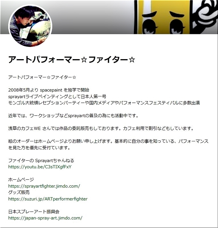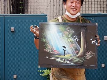 スプレーアートですけど、取り掛かりますとアッと言う間に美術品レベルの作品が完成ですから、見ていましても大変楽しいアートパフォーマー(^_^)v
