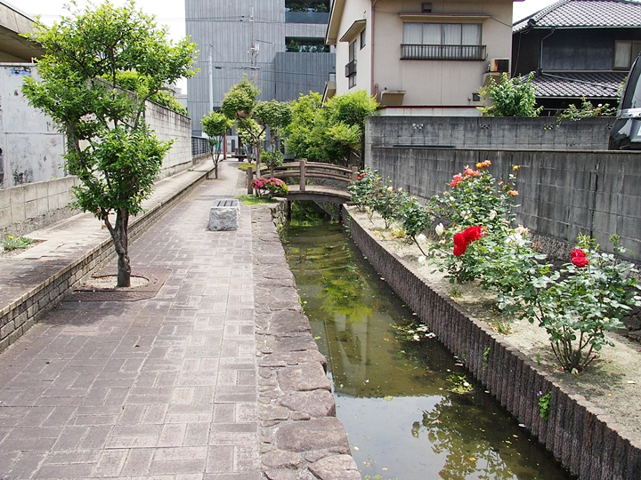 明治維新後は、下井手川からの取水した水を農業用水として利用していましたが、都市化、宅地化とともに「死の川」となってしまいました。その後、「ほたるの舞う美しい川を目指す」と、住民と行政が一体となった整備が行なわれ、清らかな流れが取り戻されたのです。